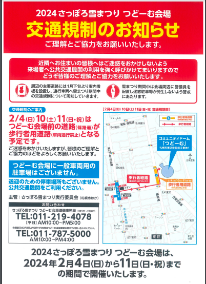 2024年つどーむ会場で開催されるため、つどーむ前の道路(篠路通)の交通規制情報はこちらになります。